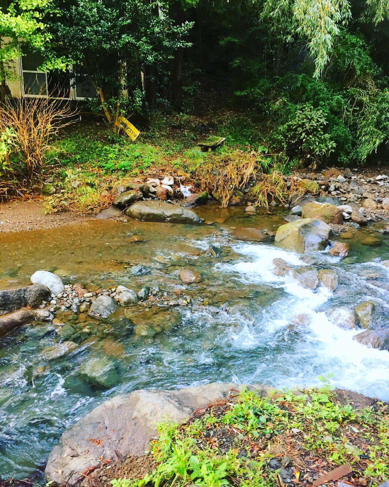 川には上流から流れてきた大きな石がゴロゴロ。